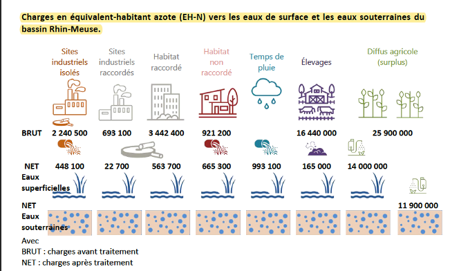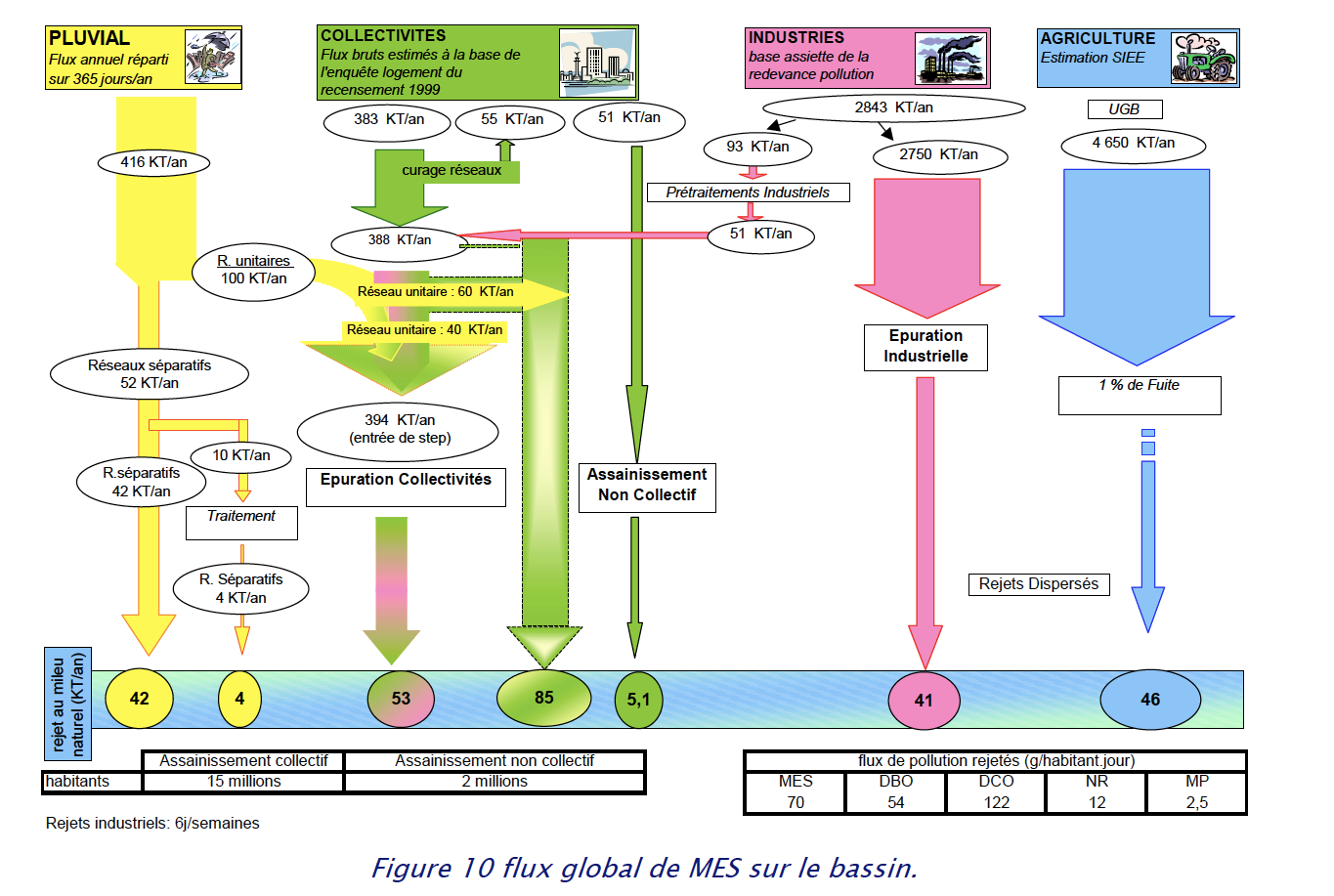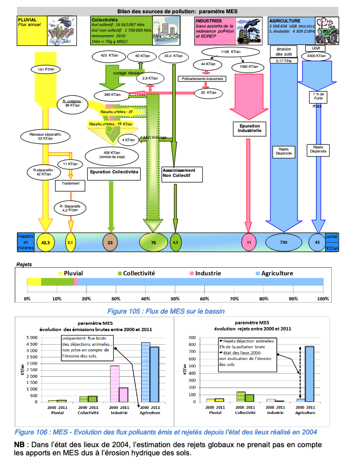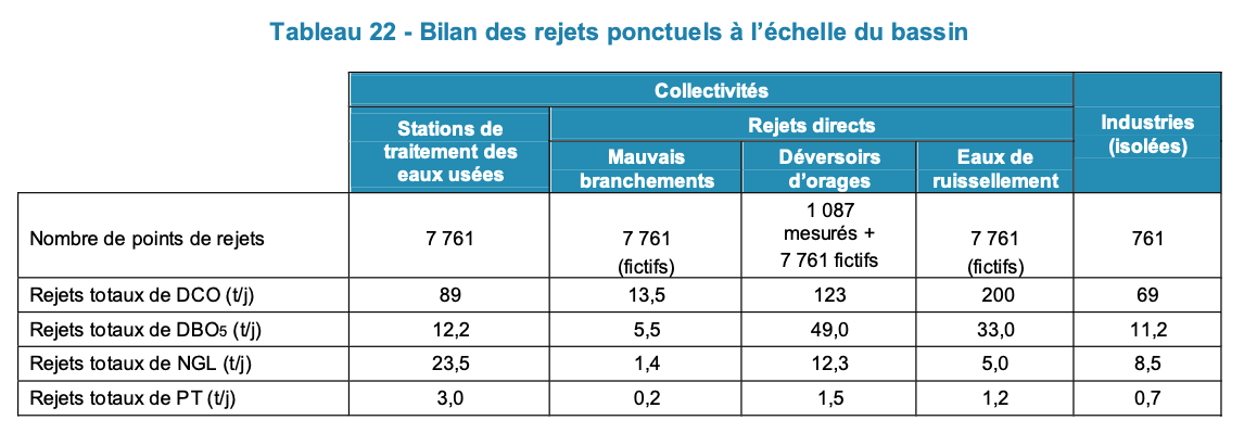 For Artois-Picardie and Rhin-Meuse, some data was also provided about direct discharge flows, for the largest wastewater treatment plants. However this only concerns water volumes and not pollutant flows As discharges tend to have lower concentrations (because of dilution during storms), these should be seen as upper bounds.