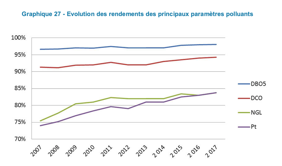 Caution, theses should be seen as orders of magnitude. The definition of losses may differ between basins (sometimes the A5 point is considered and sometimes not, sometimes unmonitored sewer losses are estimated and sometimes not…). At the national scale, the population-weigthed average is 10%.