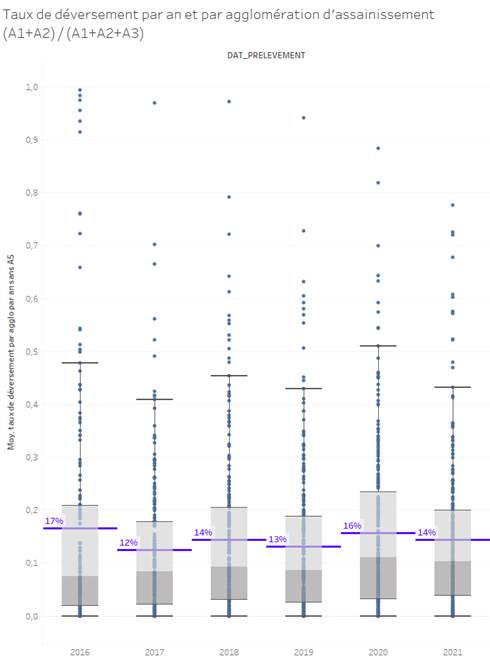 In the following we mention French regumatory points (A1, A2, A3…) related to sewers networks and wastewater treatment plants. Their definition can be seen on this page, or by clicking on the drop-down menu below. Note that these monitored points can underestimate the actual sewers discharge to the environment, as there are sewers leakage that are not monitored.